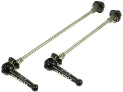 El set de cierres rápidos de bujes de titanio KQR se puede montar en tu MTB en un abrir y cerrar de ojos. El eje de titanio te ofrece, además de la ligereza, una enorme estabilidad.
