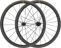 Especificaciones:Campo de aplicación:Ruta, Triatlón & CronoTamaño de la rueda:28″Tipo de cubierta:Cubierta alambre-/cubierta plegableNúmero de radios:18 (RD), 20 (RT)Sistema de frenos:Freno de llantaSistema Tubeless:UST Road TubelessDatos técnicos de la llanta:Brida de la llanta:con ganchoDimensión (ETRTO):19-622Ancho interior de la llanta:19 mmAncho exterior de la llanta:25,7 mmAltura de la llanta:40 mmAgujero de válvula (diámetro):SV (6,5 mm)Material llanta:CarbonoDatos técnicos del buje delantero:Tipo:Mavic InfinityAncho de montaje:Cierre rápido 9 x 100 mmRodamientos:rodamientos industriales sellados autoajustablesMaterial de la carcasa del buje:AluminioDatos técnicos del buje trasero:Tipo:Mavic InfinityAncho de montaje:Cierre rápido 10 x 130 mmRodamientos:rodamientos industriales sellados autoajustablesMaterial de la carcasa del buje:AluminioMaterial cuerpo de rueda libre:AluminioSistema de rueda libre:Instant Drive 360Datos técnicos de radiado:Tipo de radiado RD:Cruzado dobleTipo de radiado RT:IsopulseTipo de radios/Diseño:Straightpull / conificadoTamaño de los radios:271 mm (RD), 280 mm/260 mm (RT izq/der)Material de los radios:AceroTipo de cabecilla/modelo:ABSMaterial Cabecillas:AluminioAprobaciones:Límite de peso:120 kg peso completo* (ciclista, equipo y bicicleta)Presión de aire máxima:Ver especificaciones de la rueda y la cubierta (en caso de que sean diferentes, tomar el valor más bajo)Ancho de cubierta recomendado:25 – 32 mm