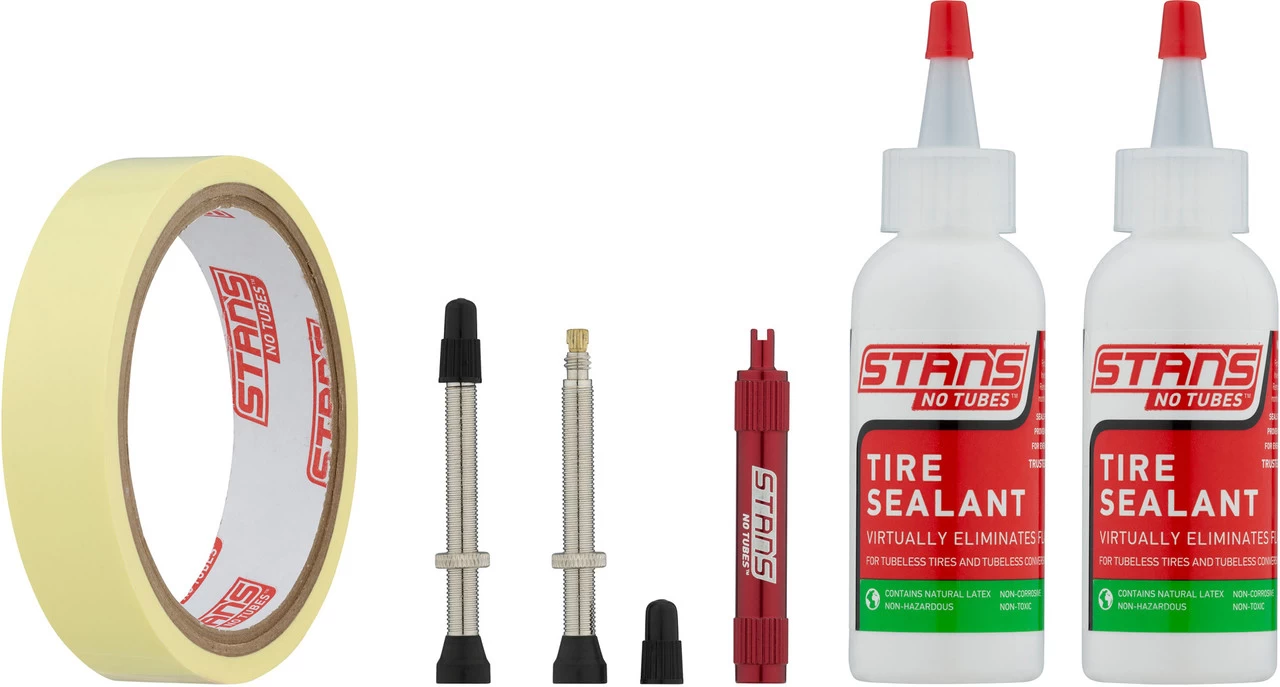 Con el kit Tubeless de NoTubes, puedes reequipar fácilmente tu bicicleta de ruta o Gravel con cubiertas Tubeless. Contenido: dos válvulas, cinta para llantas y dos botellas de sellador de cubiertas de 59 ml.