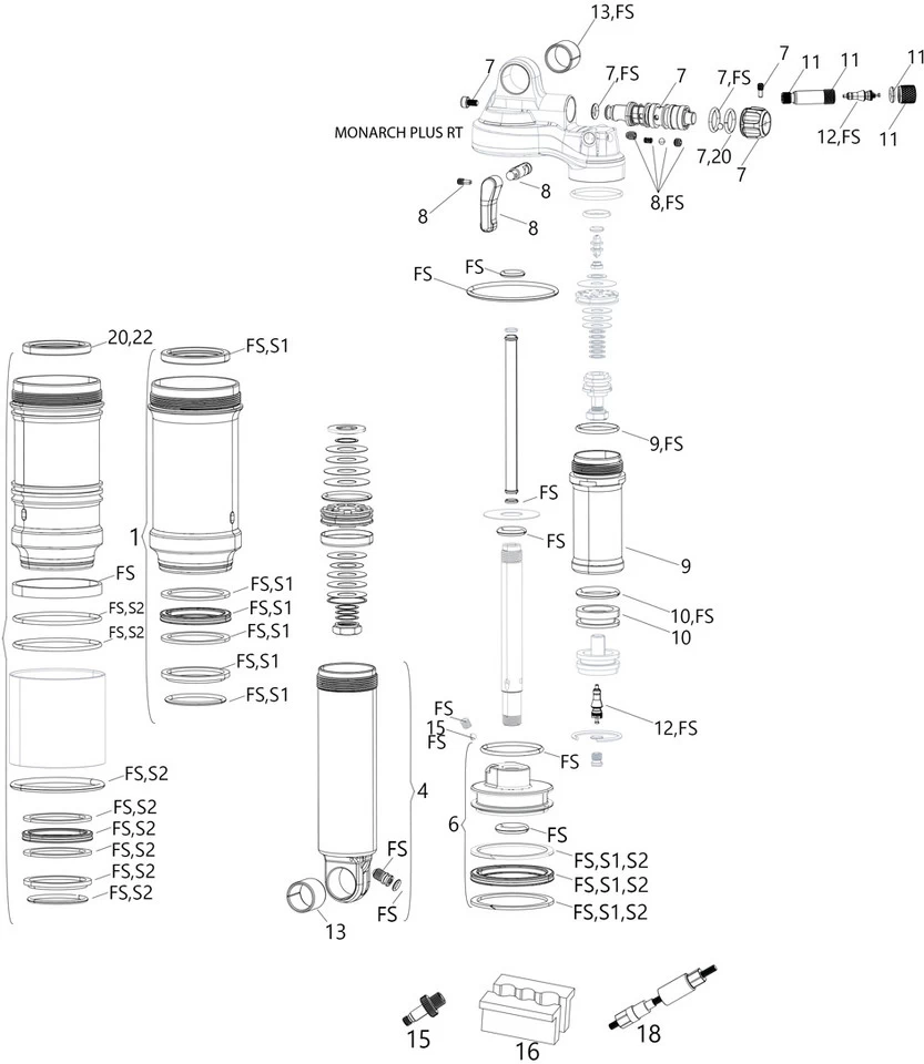 ROCKSHOX Piezas De Repuesto Monarch Plus RT (B1-B4 / 2014-2021)