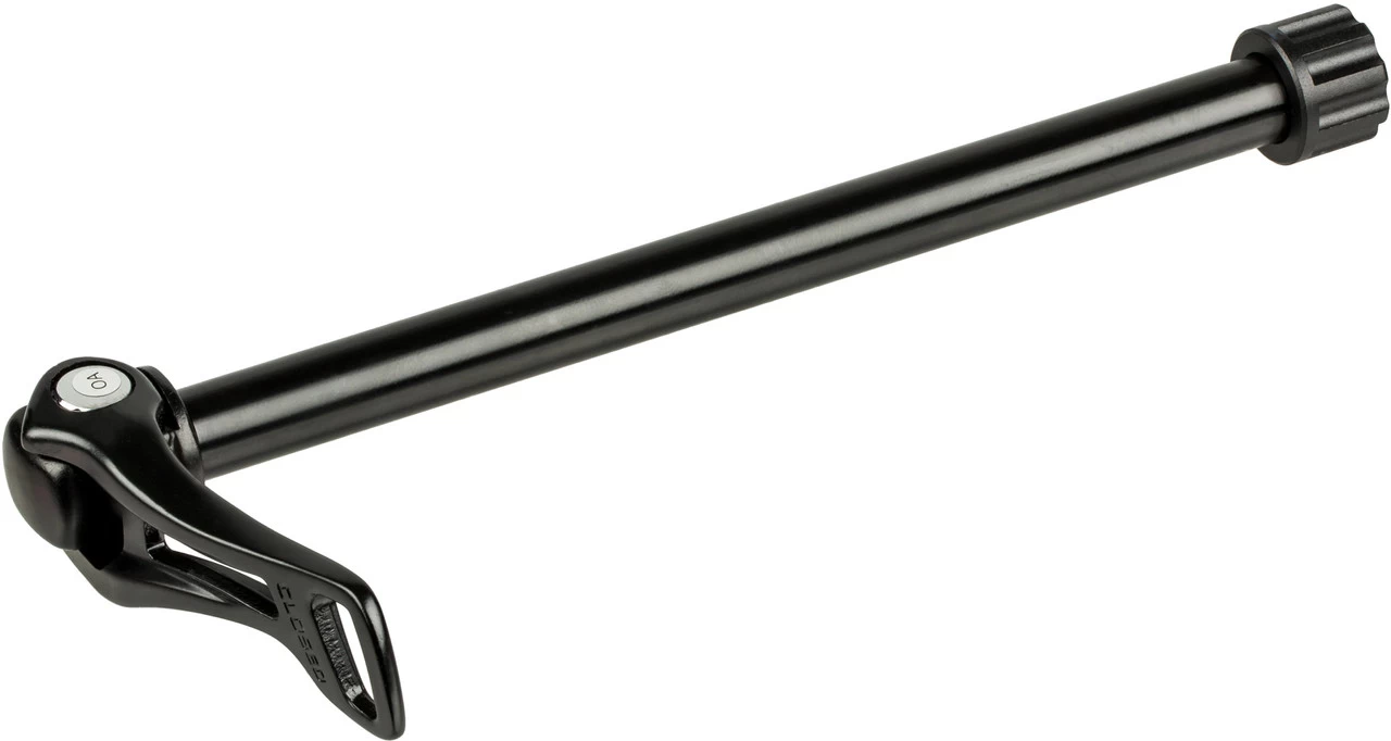 El Shimano SM-AX76-B es un eje pasante para bujes de ruedas traseras con unas dimensiones de montaje de 12 x 148 mm. Gracias al sistema E-Thru, asegura una óptima relación rigidez-peso. El eje hueco tiene 177 mm de largo y está hecho de aluminio, al igual que la palanca y la contratuerca.