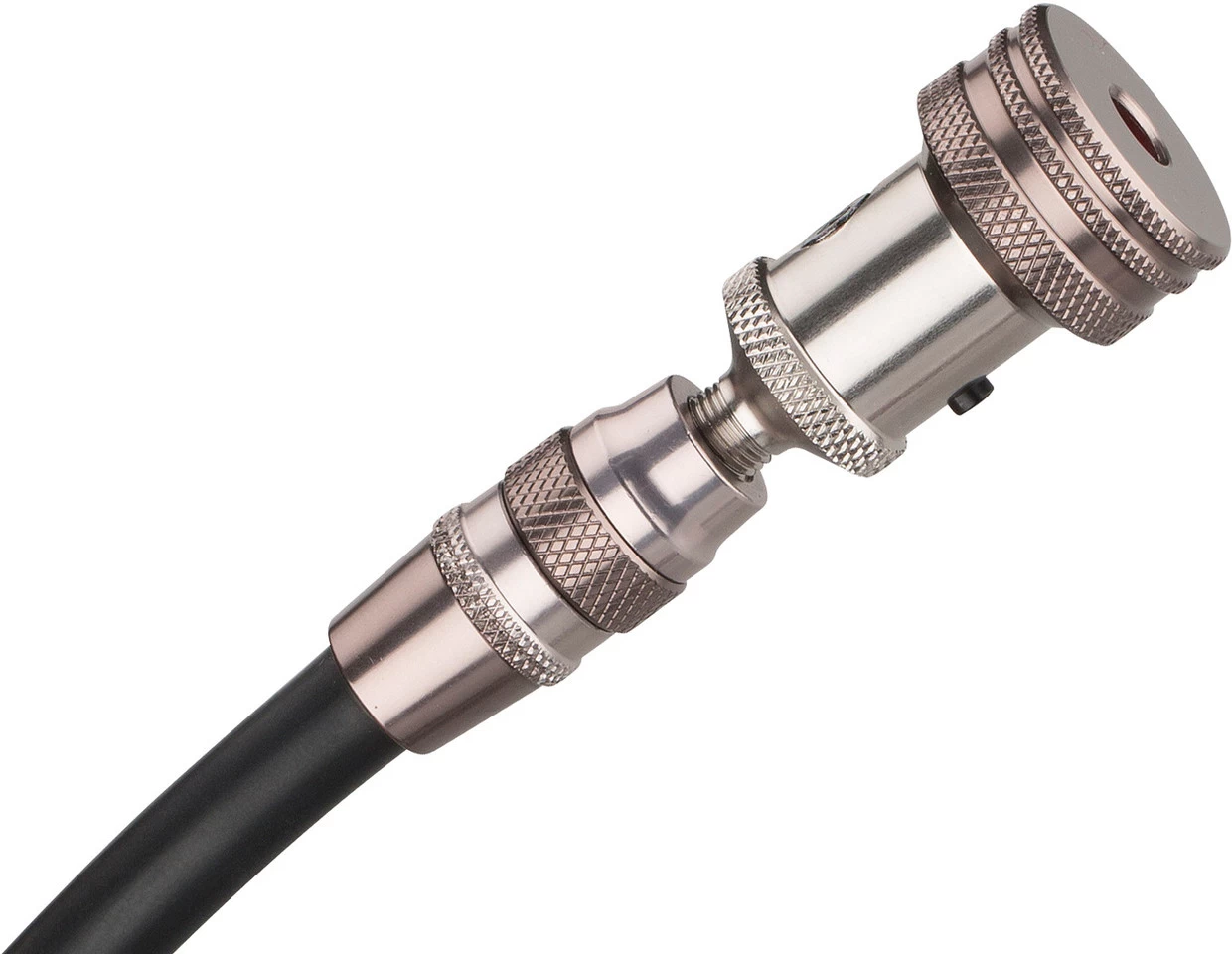 La Pista Plus tiene una manguera larga y flexible con un dispositivo de válvula Schrader integrado y viene con cabezal de bomba Presta con válvula de purga acoplable. También se ha perfeccionado el soporte del cabezal de bomba, ya que aquí se fija la manguera flexible Schrader. Así puedes sustituir fácilmente el cabezal de la bomba Presta por la versión HIRO u otras, como los adaptadores para ruedas de disco.