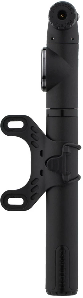 La mini bomba Air Tool Switch Comp de Specialized está equipada con un manómetro analógico, con el que logras conseguir más fácilmente la presión correcta de las cubiertas. La bomba genera hasta 8,3 bares y puede utilizarse tanto con válvulas SV como AV gracias al cabezal automático SwitchHitter II. Una combinación de cilindro de plástico y eje de aluminio hace que el modelo sea robusto y rígido al mismo tiempo. Se incluye un soporte de cuadro para el montaje en ojales de portabidones.