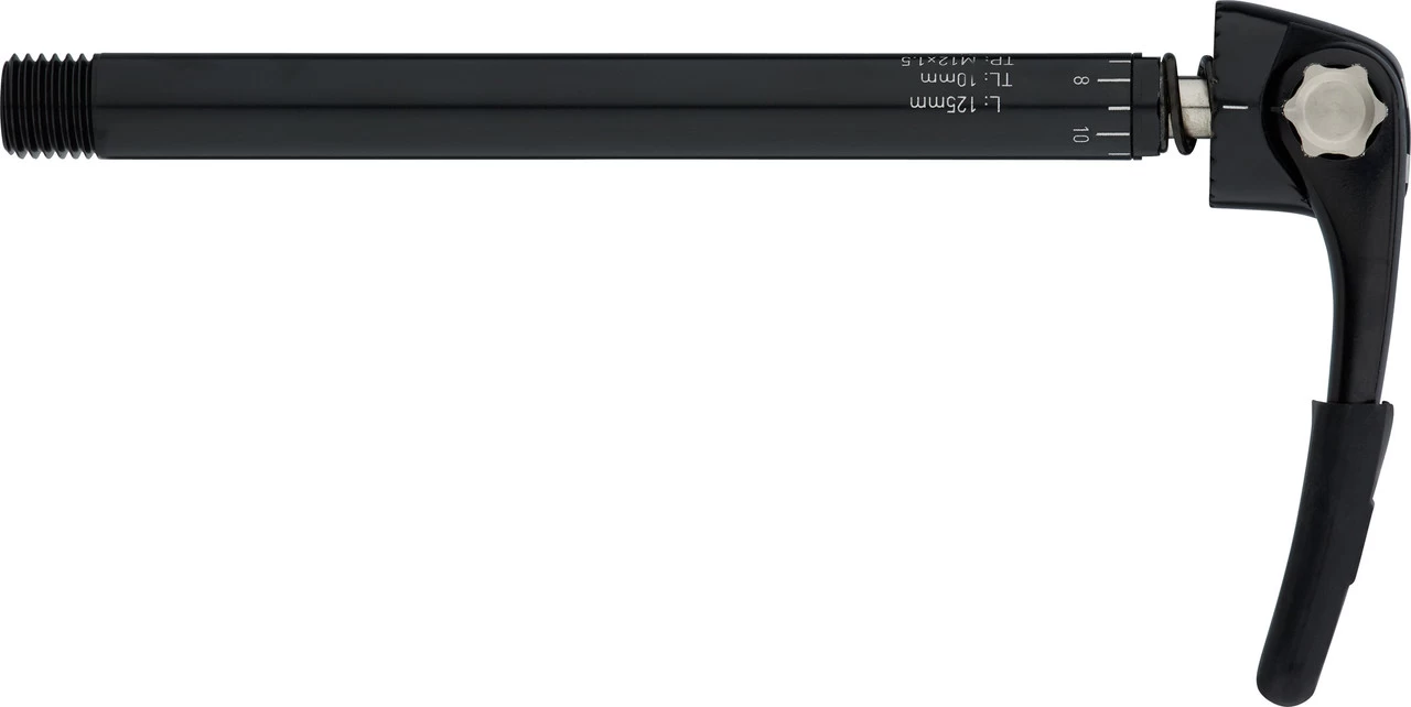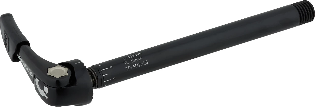 Especificaciones:Ancho de montaje:RD: 100 mmDiámetro del eje:12 mmTipo:Eje pasante con palanca de cierre rápidoCaracterísticas:gran fuerza de sujeciónmontaje sin herramientasModelos:12 x 100 mm, 1,5 mm, 137 mm: